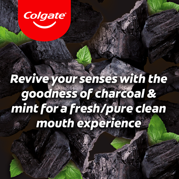 Colgate® Charcoal Gentle Clean with activated charcoal toothpaste removes stains and impurities for whiter teeth and fresher breath, while fluoride works to strengthen tooth enamel to prevent cavities. Enjoy a cooling mint flavor for a clean and fresh feeling every day.